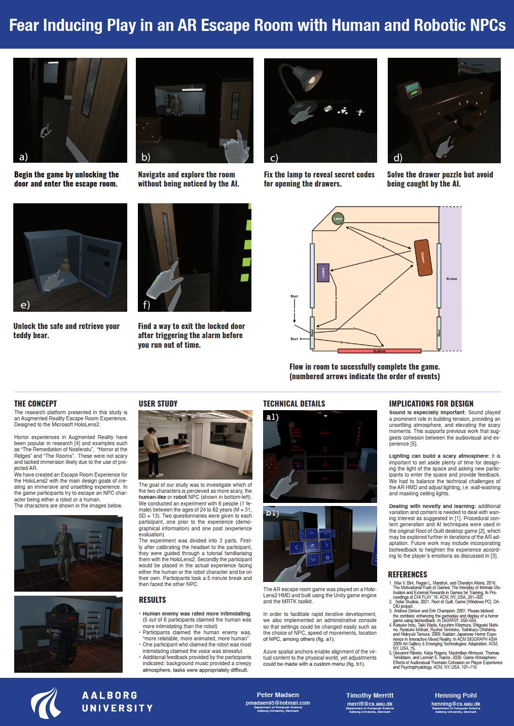 Oplevelsen blev designet til at fremme immersion og fysisk interaktion i et begrænset rum, og demonstrerede, hvordan mixed reality kan anvendes i fremtidens escape room-koncept og interaktiv læring.